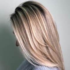 Эффект «тени» на Ваших волосах создаётся благодаря переходу от более темных корней к очень светлым кончикам. Результат окрашивания сравним с эффектом выгоревших на южном солнце волос.